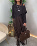SPECIFIKATIONER Stil: Elegant,Fest Top type: Sweatre Kjoletype: Cami Kategori: Sæt Materiale: Mesh,Akryl,Spandex,Polyester Mønstertype: Ensfarvet Halsudskæring: Kold skulder Ærmetype: Flagermuse-ærmer Ærmelængde: Langærmet Kjolelængde: Midi Taljetype: Høj talje Pasform: Løs Sæson/årstid: Forår,Efterår,Vinter Detaljer: Patchwork,Rynket Lejlighe...