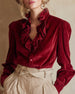 SPECIFIKATIONER Top type: Bluser Stil: Elegant,Fest Materiale: Fløjl Lejlighed: Daglig,Arbejde,Fest Halsudskæring: V-udskæring Mønstertype: Ensfarvet Ærmetype: Puf-ærmer Ærmelængde: Langærmet Pasform: Almindelig Sæson/årstid: Forår,Efterår,Vinter Detaljer: Knapper,Pjusket Pakken inkluderer: 1 x Bluse STØRRELSESTABEL (cm) Størrelse Buste Læng...