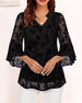 SPECIFIKATIONER Top type: Bluser Stil: Chic Materiale: Bomuldsblanding Lejlighed: Daglig Halsudskæring: V-udskæring Mønstertype: Ensfarvet Ærmetype: Vidærmet Ærmelængde: Ni-punkts-ærmer Pasform: Almindelig Sæson/årstid: Efterår,Vinter Detaljer: Gennemsigtig Pakken inkluderer: 1 x Bluse STØRRELSESTABEL (cm) Størrelse Buste Længde S 92 65 ...