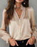 SPECIFIKATIONER Top type: Bluser Stil: Afslappet Materiale: Bomuldsblanding Lejlighed: Daglig Halsudskæring: V-udskæring Mønstertype: Ensfarvet Ærmetype: Pjuskærmer Ærmelængde: Langærmet Pasform: Almindelig Sæson/årstid: Efterår,Vinter Detaljer: Snøre Pakken inkluderer: 1 x Bluse STØRRELSESTABEL (cm) Størrelse Buste Længde S 92 65 M 96 6...