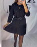 SPECIFIKATIONER Stil: Afslappet Materiale: Strik,Polyester Kjoletype: A-linje Kjolelængde: Knælængde Halsudskæring: Rund hals Mønstertype: Ensfarvet Ærmetype: Almindeligt ærme Ærmelængde: Langærmet Detaljer: Patchwork,Snøre op Pasform: Løs Sæson/årstid: Efterår,Vinter Lejlighed: Daglig Pakken inkluderer: 1 x Kjole STØRRELSESTABEL (cm) S...