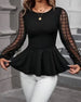Ensfarvet Bluse Med Lanternearmer Og Patchworkdetaljer