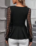 SPECIFIKATIONER Stil: Fest Materiale: Mesh,Strik Kjoletype: Shift-kjole Kjolelængde: Knælængde Halsudskæring: Rund hals Mønstertype: Prikket Ærmetype: Vidærmet Ærmelængde: Langærmet Detaljer: Patchwork Pasform: Almindelig Sæson/årstid: Efterår,Vinter Lejlighed: Daglig,Fest Pakken inkluderer: 1 x Kjole STØRRELSESTABEL (cm) Størrelse Buste Læn...