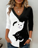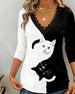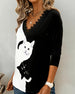 SPECIFIKATIONER Top type: Toppe Stil: Afslappet Materiale: Bomuldsblanding,Snøre Lejlighed: Daglig Halsudskæring: V-udskæring Mønstertype: Tryk Ærmetype: Almindeligt ærme Ærmelængde: Langærmet Pasform: Almindelig Sæson/årstid: Efterår,Vinter Pakken inkluderer: 1 x Top STØRRELSESTABEL (cm) Størrelse Buste Længde S 97 65 M 101 66.5 L 105...
