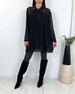 Ensfarvet Bluse Med Klokkearmer Og V-Hals