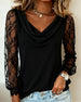 SPECIFIKATIONER Top type: Toppe Stil: Afslappet Materiale: Bomuldsblanding,Snøre Lejlighed: Daglig Halsudskæring: Draperet Krave Mønstertype: Ensfarvet Ærmetype: Almindeligt ærme Ærmelængde: Langærmet Pasform: Almindelig Sæson/årstid: Efterår,Vinter Pakken inkluderer: 1 x Top STØRRELSESTABEL (cm) Størrelse Buste Længde S 97 65 M 101 66.5...