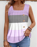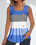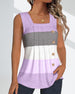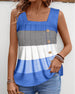 SPECIFIKATIONER Top type: Tank top Stil: Afslappet Materiale: 6% Spandex,94% Polyester Lejlighed: Daglig Halsudskæring: Firkantet hals Mønstertype: Stribet Ærmelængde: Uden ærmer Pasform: Almindelig Sæson/årstid: Sommer Detaljer: Knapper, Rynket Pakken inkluderer: Tank top STØRRELSESTABEL (cm) Størrelse Buste Længde S 90 68 M 95 69....