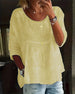 Gul hulmønstret top med trekvarte ærmer