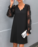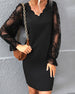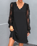 SPECIFIKATIONER Stil: Elegant Materiale: Polyester Kjoletype: Shift-kjole Kjolelængde: Knælængde Halsudskæring: V-udskæring Ærmetype: Lanterneærmet Ærmelængde: Langærmet Detaljer: Patchwork, Gennemsigtig Pasform: Almindelig Sæson/årstid: Forår, Sommer, Efterår Lejlighed: Daglig Pakken inkluderer: 1 x Kjole STØRRELSESTABEL (cm) Størrelse...