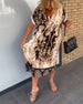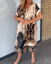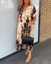 SPECIFIKATIONER Stil: Afslappet Materiale: 95% polyester, 5% spandex Kjoletype: Shift-kjole Kjolelængde: Midi Halsudskæring: V-udskæring Mønstertype: Tryk Ærmetype: Almindeligt ærme Ærmelængde: Kortærmet Detaljer: Patchwork Pasform: Almindelig Sæson/årstid: Forår, Sommer, Efterår Lejlighed: Daglig Pakken inkluderer: 1 x Kjole STØRRELSESTABE...