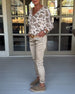 Stenmønstret bluse med flagermusærmer