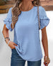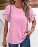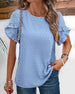 SPECIFIKATIONER Top type: Toppe Stil: Afslappet Materiale: 100% Polyester Lejlighed: Daglig, Ferie Halsudskæring: Rund hals Mønstertype: Tryk Ærmetype: Pjuskærmer Ærmelængde: Kortærmet Pasform: Almindelig Sæson/årstid: Forår, Sommer Detaljer: Knapper Pakken inkluderer: 1 x Top STØRRELSESTABEL (cm) Størrelse Buste Længde Ærmer Skulde...