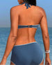 Marineblå bikini i crossover-design og takket kantmønster