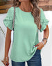 SPECIFIKATIONER Top type: Toppe Stil: Elegant Materiale: Bomuldsblanding, Snøre Lejlighed: Daglig Halsudskæring: V-udskæring Mønstertype: Ensfarvet Ærmetype: Almindeligt ærme Ærmelængde: Trekvartærmet Pasform: Almindelig Sæson/årstid: Forår, Sommer, Efterår Detaljer: Patchwork, Udhulende Pakken inkluderer: 1 x Top STØRRELSESTABEL (cm) ...