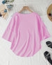 SPECIFIKATIONER Top type: T-shirt Stil: Afslappet Materiale: Bomuldsblanding Lejlighed: Daglig Halsudskæring: Rund hals Mønstertype: Tryk Ærmetype: Almindeligt ærme Ærmelængde: Kortærmet Pasform: Almindelig Sæson/årstid: Forår,Sommer Detaljer: Rynket Pakken inkluderer: 1 x T-shirt STØRRELSESTABEL (cm) Størrelse Buste Længde S 97 65 M 101...
