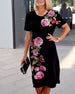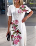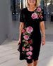 Kjole Korte Ærmer Rosetryk Shift