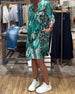 SPECIFIKATIONER Stil: Elegant Materiale: 3% Spandex, 97% Polyester Kjoletype: A-linje Kjolelængde: Knælængde Halsudskæring: V-udskæring Mønstertype: Tryk Ærmetype: Almindeligt ærme Ærmelængde: Trekvartærmet Pasform: Almindelig Sæson/årstid: Forår, Sommer Lejlighed: Ferie Pakken inkluderer: 1 x Kjole STØRRELSESTABEL (cm) Størrel...