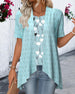 SPECIFIKATIONER Top type: Bluser Stil: Afslappet Materiale: Bomuldsblanding Lejlighed: Daglig Halsudskæring: Rund hals Mønstertype: Tryk Ærmetype: Almindeligt ærme Ærmelængde: Kortærmet Pasform: Almindelig Sæson/årstid: Forår,Sommer Detaljer: Udhulende,To falske stykker Pakken inkluderer: 1 x Bluse STØRRELSESTABEL (cm) Størrelse Buste Længde...
