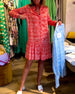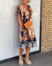 Kortærmet blomsterkjole med V-udskæring