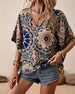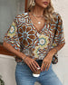 SPECIFIKATIONER Top type: Bluser Stil: Vintage Materiale: 100% Polyester Lejlighed: Daglig Halsudskæring: V-udskæring Mønstertype: Tryk Ærmetype: Almindeligt ærme Ærmelængde: Halve ærmer Pasform: Almindelig Sæson/årstid: Forår, Sommer Detaljer: Knapper Pakken inkluderer: Bluse STØRRELSESTABEL (cm) Størrelse Buste Længde S 98 65 ...