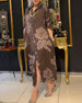 SPECIFIKATIONER Stil: Afslappet Materiale: 5% Spandex,95% Polyester Kjoletype: Shift-kjole Kjolelængde: Knælængde Halsudskæring: Revers Mønstertype: Tryk Ærmetype: Almindeligt ærme Ærmelængde: Langærmet Detaljer: Flænge Pasform: Almindelig Sæson/årstid: Forår, Sommer, Efterår Lejlighed: Daglig, Ferie Pakken inkluderer: 1 x Kjole STØRRELSES...