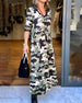SPECIFIKATIONER Stil: Afslappet Materiale: Bomuldsblanding Kjoletype: A-linje Kjolelængde: Maxi Halsudskæring: V-udskæring Mønstertype: Kamoflage Ærmetype: Almindeligt ærme Ærmelængde: Langærmet Pasform: Almindelig Sæson/årstid: Forår, Sommer, Efterår Lejlighed: Daglig Pakken inkluderer: 1 x Kjole STØRRELSESTABEL (cm) Størrelse Buste Læ...