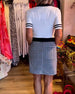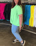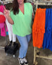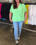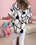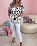 Kortærmet afslappet top med V-udskæring og kontrastprint