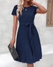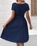 SPECIFIKATIONER Stil: Elegant,Forretning/Business Materiale: Bomuldsblanding Kjoletype: A-linje Kjolelængde: Knælængde Halsudskæring: Rund hals Mønstertype: Ensfarvet Ærmetype: Almindeligt ærme Ærmelængde: Kortærmet Detaljer: Snøre op,Rynket Pasform: Almindelig Sæson/årstid: Forår,Sommer,Efterår Lejlighed: Daglig,Arbejde Pakken inkluderer: 1 ...