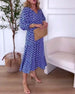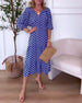 SPECIFIKATIONER Stil: Afslappet, Ferie Materiale: Bomuldsblanding Kjoletype: Shift-kjole Kjolelængde: Midi Halsudskæring: V-udskæring Mønstertype: Prikket Ærmetype: Almindeligt ærme Ærmelængde: Langærmet Pasform: Løs Sæson/årstid: Forår, Sommer Lejlighed: Daglig, Ferie Pakken inkluderer: 1 x Kjole STØRRELSESTABEL (cm) Størrelse Buste Læ...