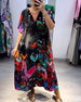 SPECIFIKATIONER Stil: Afslappet Materiale: Bomuldsblanding Kjoletype: A-linje Kjolelængde: Midi Halsudskæring: V-udskæring Mønstertype: Tryk Ærmetype: Almindeligt ærme Ærmelængde: Trekvartærmet Pasform: Almindelig Sæson/årstid: Forår, Sommer Lejlighed: Daglig Pakken inkluderer: 1 x Kjole STØRRELSESTABEL (cm) Størrelse Buste Længde S 9...