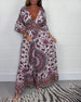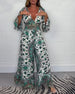 SPECIFIKATIONER Stil: Afslappet, Ferie Materiale: 3% Spandex, 97% Polyester Mønstertype: Tryk Halsudskæring: V-udskæring Ærmetype: Vidærmet Ærmelængde: Langærmet Buksetype: Brede ben Bukselængde: Lang Pasform: Almindelig Sæson/årstid: Forår, Sommer Pakken inkluderer: 1 x Jumpsuits STØRRELSESTABEL (cm) Størrelse Buste Længde Ærme...