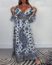 SPECIFIKATIONER Stil: Boho Materiale: 100% Polyester Kjoletype: Shift-kjole Kjolelængde: Maxi Halsudskæring: Off-shoulder Mønstertype: Tryk Ærmetype: Almindeligt ærme Ærmelængde: Halve ærmer Detaljer: Flænge Pasform: Almindelig Sæson/årstid: Sommer Lejlighed: Daglig Pakken inkluderer: 1 x Kjole STØRRELSESTABEL (cm) Størrelse Buste...