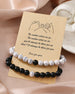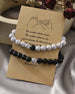FUNKTIONER Elegant Design: Armbåndssættet har en harmonisk kombination af hvide og matsorte stenperler, hvilket skaber en slående kontrast, der er både moderne og tidløs. Naturlige elementer: De hvide stenperler er lavet af natursten og tilbyder en unik tekstur og subtil marmorering, mens de matsorte sten tilføjer et slankt, underspillet touch....