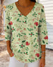 Damens strikkede top med julprint, V-hals, 3/4 ærmer, casual stil og løs passform