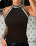 Strikket Top V-Udskæring Sexig Perlebrodseret Ærme