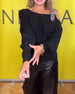 Ensfarvet sweater med lanterneærmer