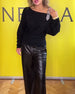 Ensfarvet ribstrikket off-shoulder sweater