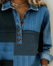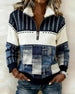Stilfuld sweatshirt med denim-patchwork og lange ærmer