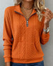 Ensfarvet Sweatshirt Med Halv Lynlås Og Jacquard
