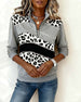Sweatshirt Leopardtryk Glitrende Med Halvlynlås Krave