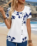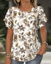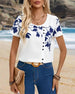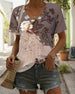 T-Shirt Blomstermønster V-Hals Korte Ærmer