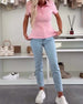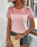 SPECIFIKATIONER Top type: T-shirt Stil: Afslappet Materiale: Bomuldsblanding Lejlighed: Daglig, Ferie Halsudskæring: Rund hals Mønstertype: Ensfarvet Ærmetype: Almindeligt ærme Ærmelængde: Kortærmet Pasform: Almindelig Sæson/årstid: Forår, Sommer Detaljer: Knapper Pakken inkluderer: T-shirt STØRRELSESTABEL (cm) Størrelse Buste Læn...