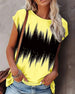 SPECIFIKATIONER Top type: T-shirt Stil: Afslappet Materiale: Bomuldsblanding Lejlighed: Daglig Halsudskæring: Rund hals Mønstertype: Tryk Ærmetype: Pjuskærmer Ærmelængde: Kortærmet Pasform: Almindelig Sæson/årstid: Forår,Sommer Detaljer: Patchwork,Udhulende Pakken inkluderer: 1 x T-shirt STØRRELSESTABEL (cm) Størrelse Buste Skulder...