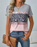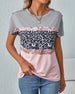 T-Shirt Rund Hals Leopardmønster Farveblok