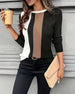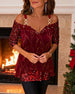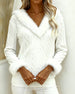 SPECIFIKATIONER Top type: Toppe Stil: Elegant Materiale: Chiffon,Fløjl Lejlighed: Daglig Halsudskæring: V-udskæring Ærmetype: Almindeligt ærme Ærmelængde: Langærmet Pasform: Almindelig Sæson/årstid: Efterår,Vinter Detaljer: Patchwork Pakken inkluderer: 1 x Top STØRRELSESTABEL (cm) Størrelse Buste Længde S 97 65 M 101 66.5 L 105 68 XL...