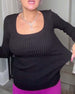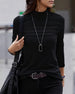 T-shirt afslappet ensfarvet U-hals med lange ærmer
