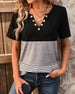 T-shirt Med Casual Farveblok U-formet Hals