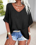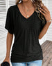 T-Shirt V-Hals Rullet Kant Korte Ærmer Los