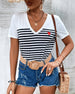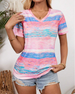 T-Shirt V-Hals Farverig Stribet Alsidig