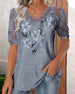 Afslappet blomsterbluse med V-hals